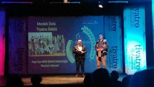 İZMİR'in Foça ilçesinde, oyuncu ve teknik ekibinin tamamının Milli Eğitim Müdürlüğü'nde görev yapan idareci, öğretmen ve hizmetlilerle öğrencilerden oluşan Foça Yeryüzü Sahnesi Tiyatro Topluluğu, tiyatro dünyasının önemli ödüllerinden Anadolu Tiyatro Ödülü'ne layık görüldü. Ödülü, İstanbul'da yapılan törenle Foça İlçe Milli Eğitim Müdürü Yüksel Akar aldı. Tiyatro Gazetesi'nin düzenlediği 6. Anadolu Tiyatro Ödülleri ödül töreni, geçen Ağustos ayında yanan Su Gösteri Sanatları Sahnesi'nde gerçekleştirildi. Törenle birlikte Su Gösteri Sanatları Sahnesi de tekrar perdelerini açtı. Törene, İstanbul Büyükşehir Belediyesi Kültür Daire Başkanı Hülya Muratlı, CHP İstanbul Milletvekili Yüksel Mansur Kılınç, Şişli Belediyesi İşletme Müdürü Hacı Kuru, tiyatro ve sinema sanatçısı Adnan Biricik, yönetmen, tiyatro ve sinema sanatçısı Tamer Levent, Oyun Yazarları ve Çevirmenleri Derneği Başkanı Nazif Uslu ile Türk tiyatrosunun önemli isimleri katıldı. Oyuncuların yanı sıra yönetmenler, oyun yazarları, tiyatroya katkı veren akademisyenler, basın mensupları, kurum ve kuruluşlar ile tiyatro emekçileri de ödüllendirildi. Büyük ödül olan Anadolu Ödülü Türk Tiyatrosu'nun usta isimlerinden Defne Yalnız'a verilirken, bir başka usta Nevra Serezli Onur Ödülü'yle taçlandırıldı. Ödül Seçici Kurulu; Foça İlçe Milli Eğitim Müdürlüğü idareci, öğretmen, hizmetli ve öğrencilerinden kurulu Foça Yeryüzü Sahnesi Tiyatro Topluluğu'nu geçen yıl Foça'da ve İzmir'in değişik ilçelerinde sahnelediği 'Anadolu Kadınları' oyunu ile 'Meslek Üstü Tiyatro Ödülü'ne layık gördü. Topluluğun genel sanat yönetmeni Ümit Görgülü ve öğretmen oyunculardan Gültekin Yeşilbaş'ın da hazır bulunduğu törende ödül, tiyatro oyuncusu Halit Karaata tarafından Foça İlçe Milli Eğitim Müdürü Yüksel Akar'a takdim edildi. Teşekkür konuşması yapan Yüksel Akar, kurdukları tiyatro topluluğunda yer alan öğretmenlerin oyunculuğu derslerde de eğitsel bir araç olarak kullandığını ve tiyatro aşkını çocuklara da aşıladığını söyledi. Akar, "Çocuk tiyatrolarından başlayarak gençlik ve yetişkin tiyatrolarının kurulmasını sağladık. Bu ödülü gönüllü öğretmenlerimiz adına alıyorum. Serbest bırakarak, dokunmayarak, onlara en büyük iyiliği yaptığıma inanıyorum. Onları alkışlıyorum, kutluyorum" dedi.