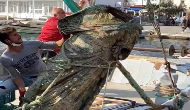 Marmaris'e 70 kilometre mesafede bulunan Bozburun ile Selimiye mahalle sınırları açıklarında Bodrumlu balıkçılar, dün saat 06.00 sıralarında ağ attı. Balıkçılar, 2,5 saat sonra 50 metre derinliğe attıkları ağlarını çekerken, bol balıktuttuklarını düşünüp, büyük heyecan yaşadı. Uzun uğraşlar sonucu çektikleri ağdan balık yerine bronz kadın heykeli çıkan balıkçılar, büyük şaşkınlık yaşadı. Heykeli teknelerine alan balıkçılar, durumu telsizle Sahil Güvenlik Marmaris İlçe Komutanlığı ekiplerine bildirdi.